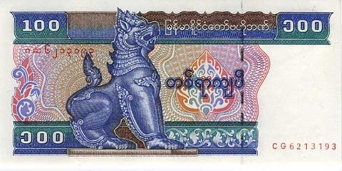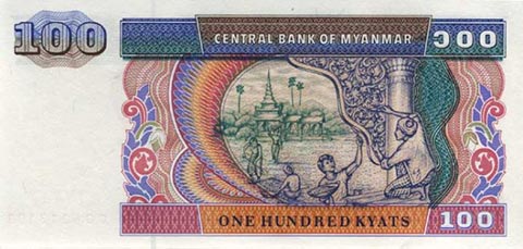 Кьят Мьянма. Купюра номиналом в 100 MMK, рверс.