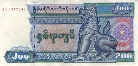 Кьят Мьянма. Купюра номиналом в 200 MMK, аверс.