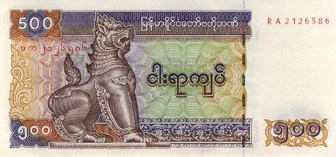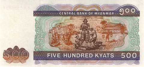 Кьят Мьянма. Купюра номиналом в 500 MMK, реверс.
