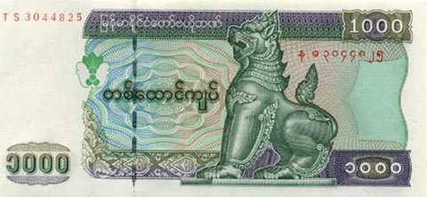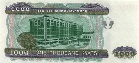 Кьят Мьянма. Купюра номиналом в 1000 MMK, реверс.