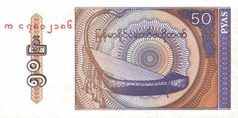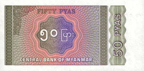 Кьят Мьянма. Купюра номиналом в 50 Pyas, реверс.