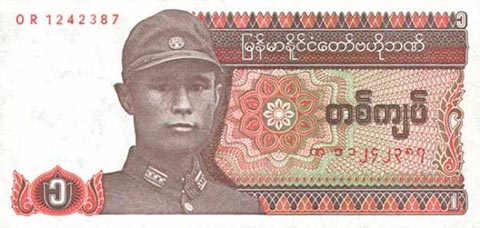 Кьят Мьянма. Купюра номиналом в 1 MMK, аверс.