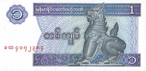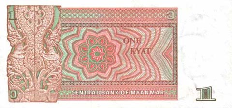 Кьят Мьянма. Купюра номиналом в 1 MMK, реверс.