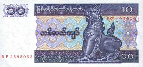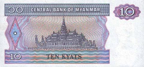 Кьят Мьянма. Купюра номиналом в 10 MMK, реверс.