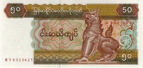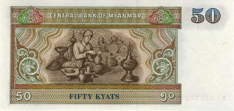 Кьят Мьянма. Купюра номиналом в 50 MMK, реверс.