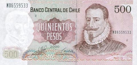 Чилийские песо. Купюра номиналом в 500 CLP, аверс.