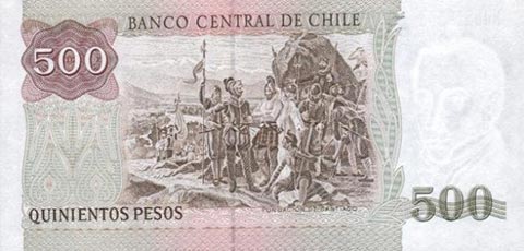 Чилийские песо. Купюра номиналом в 500 CLP, реверс.