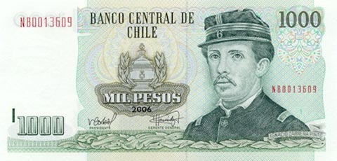Чилийские песо. Купюра номиналом в 1000 CLP, аверс.