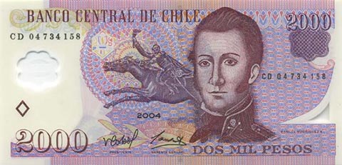 Чилийские песо. Купюра номиналом в 2000 CLP, аверс.