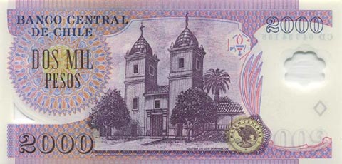 Чилийские песо. Купюра номиналом в 2000 CLP, реверс.