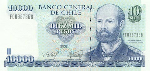 Чилийские песо. Купюра номиналом в 10000 CLP, аверс.