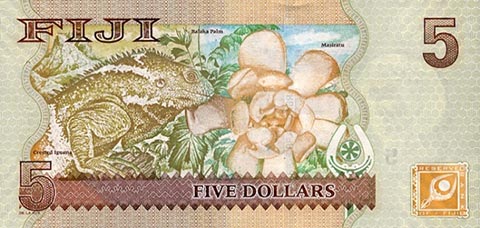 Фиджийский доллар. Купюра номиналом в 5 FJD, реверс.