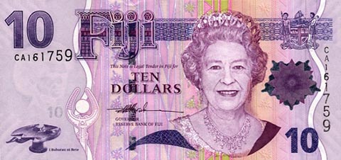 Фиджийский доллар. Купюра номиналом в 10 FJD, аверс.