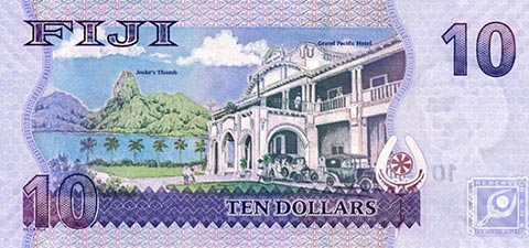 Фиджийский доллар. Купюра номиналом в 10 FJD, реверс.