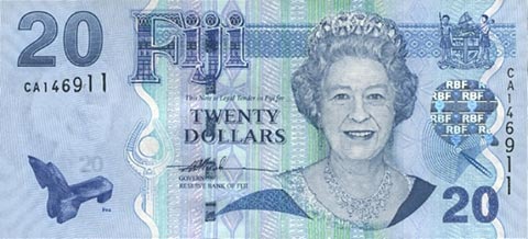 Фиджийский доллар. Купюра номиналом в 20 FJD, аверс.