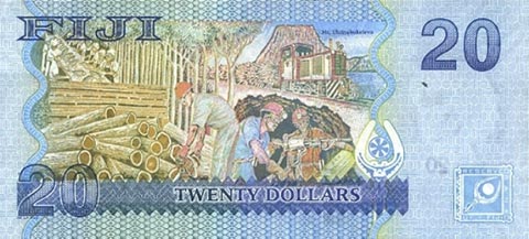 Фиджийский доллар. Купюра номиналом в 20 FJD, реверс.