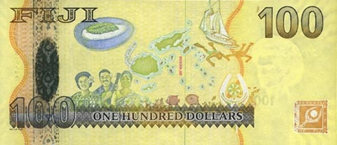 Фиджийский доллар. Купюра номиналом в 100 FJD, реверс.