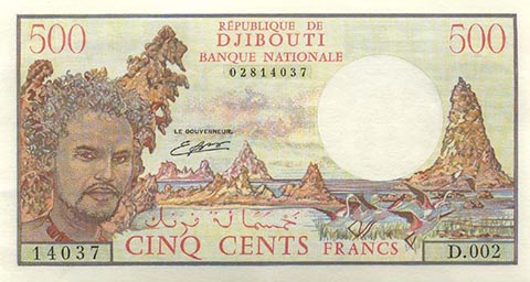Франк джибути. Купюра номиналом в 500 DJF, аверс.