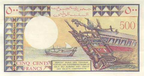 Франк джибути. Купюра номиналом в 500 DJF, реверс.