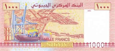 Франк джибути. Купюра номиналом в 1000 DJF, реверс.