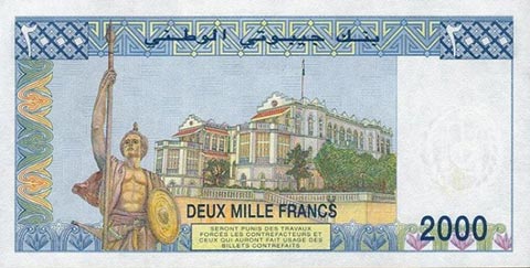 Франк джибути. Купюра номиналом в 2000 DJF, реверс.