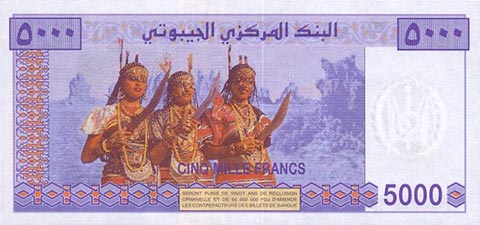 Франк джибути. Купюра номиналом в 5000 DJF, реверс.