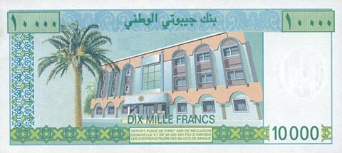Франк джибути. Купюра номиналом в 10000 DJF, реверс.
