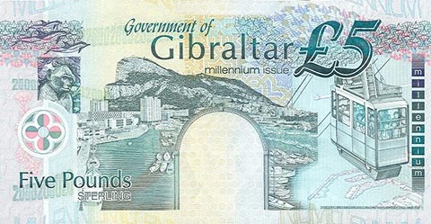 Гибралтарский фунт. Купюра номиналом в 5 GIP, реверс.