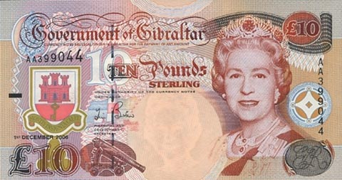 Гибралтарский фунт. Купюра номиналом в 10 GIP, аверс.