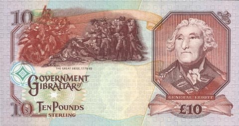 Гибралтарский фунт. Купюра номиналом в 10 GIP, реверс.