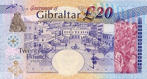 Гибралтарский фунт. Купюра номиналом в 20 GIP, реверс.