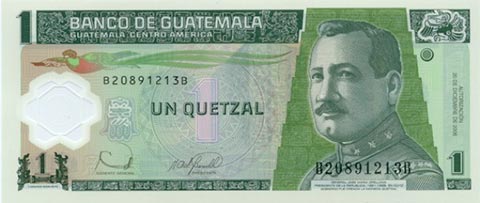 Гватемальский кетсаль. Купюра номиналом в 1 GTQ, аверс.