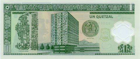 Гватемальский кетсаль. Купюра номиналом в 1 GTQ, реверс.