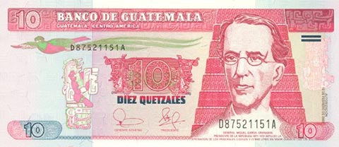 Гватемальский кетсаль. Купюра номиналом в 10 GTQ, аверс.