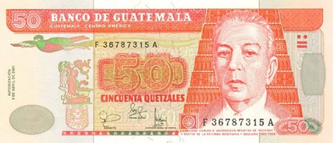 Гватемальский кетсаль. Купюра номиналом в 50 GTQ, аверс.