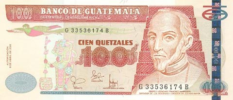 Гватемальский кетсаль. Купюра номиналом в 100 GTQ, аверс.
