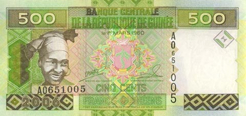 Гвинейский франк. Купюра номиналом в 500 GNF, аверс.