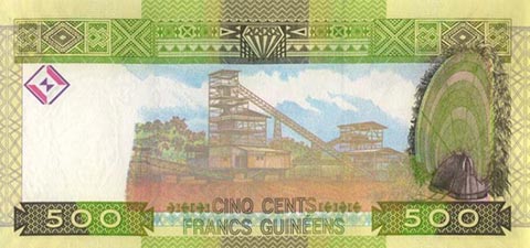 Гвинейский франк. Купюра номиналом в 500 GNF, реверс.