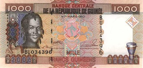 Гвинейский франк. Купюра номиналом в 1000 GNF, аверс.