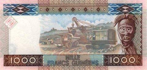 Гвинейский франк. Купюра номиналом в 1000 GNF, реверс.