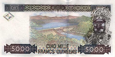 Гвинейский франк. Купюра номиналом в 5000 GNF, реверс.