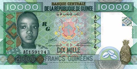 Гвинейский франк. Купюра номиналом в 10000 GNF, аверс.