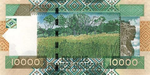 Гвинейский франк. Купюра номиналом в 10000 GNF, реверс.