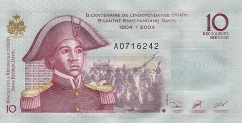 Гаитянский гурд. Купюра номиналом в 10 HTG, аверс.