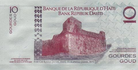 Гаитянский гурд. Купюра номиналом в 10 HTG, реверс.