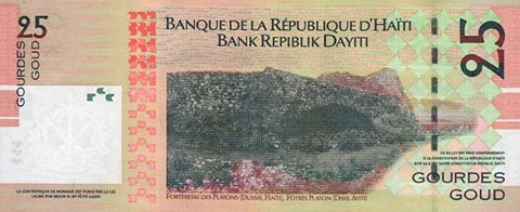 Гаитянский гурд. Купюра номиналом в 25 HTG, реверс.