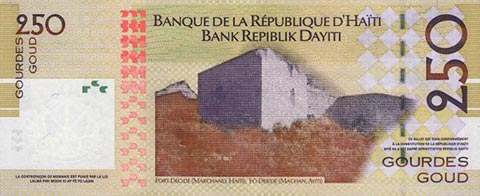 Гаитянский гурд. Купюра номиналом в 250 HTG, реверс.