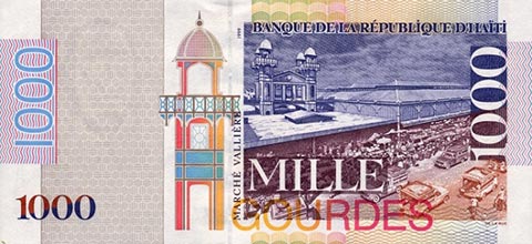 Гаитянский гурд. Купюра номиналом в 1000 HTG, реверс.