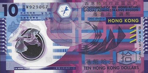 Гонконгский доллар. Купюра номиналом в 10 HKD, аверс.