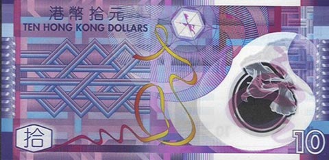 Гонконгский доллар. Купюра номиналом в 10 HKD, реверс.